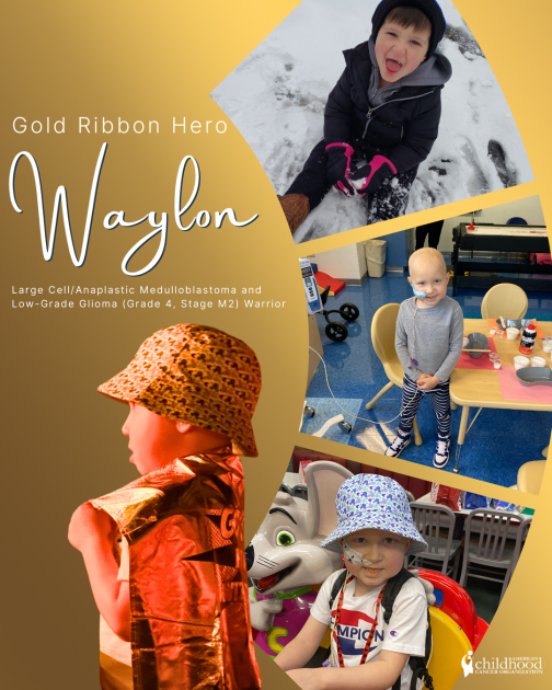 After continuous headaches, persistent vomiting and balance issues, Waylon’s family took notice. Since being diagnosed with large cell/anaplastic medulloblastoma and low-grade glioma (Grade 4, Stage M2) on April 24, 2025.