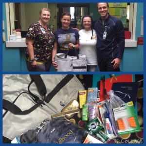 These hospital care bags were inspired by Zac’s mom and sister after having an extended stay at the hospital. Zac’s mom, Kathy, was by his side 24/7 and often times needed items that weren’t readily available to her at the hospital. We made these bags in hopes that it will make life a little easier on the families staying for a long period of time with their child. The last thing these parents need to think about is where and how to get some essential care items. The bags included: shampoo and conditioner, body soap, lotion, chap stick, gum, mints, eye masks, blankets and nail files provided by ACCO, notebooks, folders, pens, calendars, instant coffee and money for the vending machines. We hope that these 25 hospital care bags can bring a little relief to families that have just had their worlds turned upside down and have a long road ahead of them. A little cheer, however small, can go a long way in the healing process.