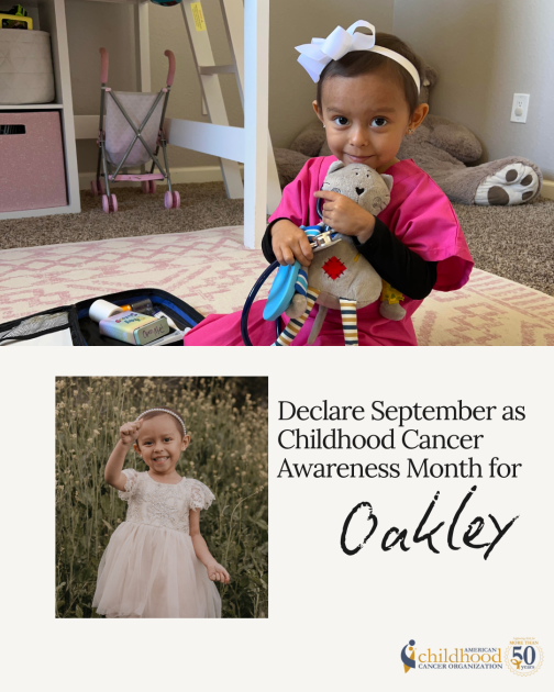 I’m partnering with @[Tag ACCO] to ask @[Governor Tag] to officially declare September as Childhood Cancer Awareness Month in [Your State Here].